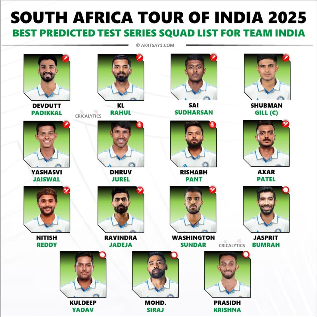 - Spin focus: They’ve selected several spinners (Keshav Maharaj, Simon Harmer, Senuran Muthusamy) to cope with the expected turn. They will test India’s batting resilience.